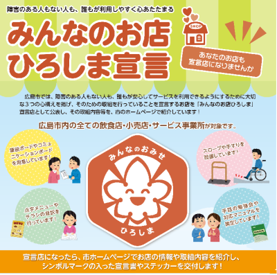 お知らせ公開日:2026年04月10日「みんなのお店ひろしま」宣言〜事業者募集のお知らせ〜1 「みんなのお店ひろしま」とは?